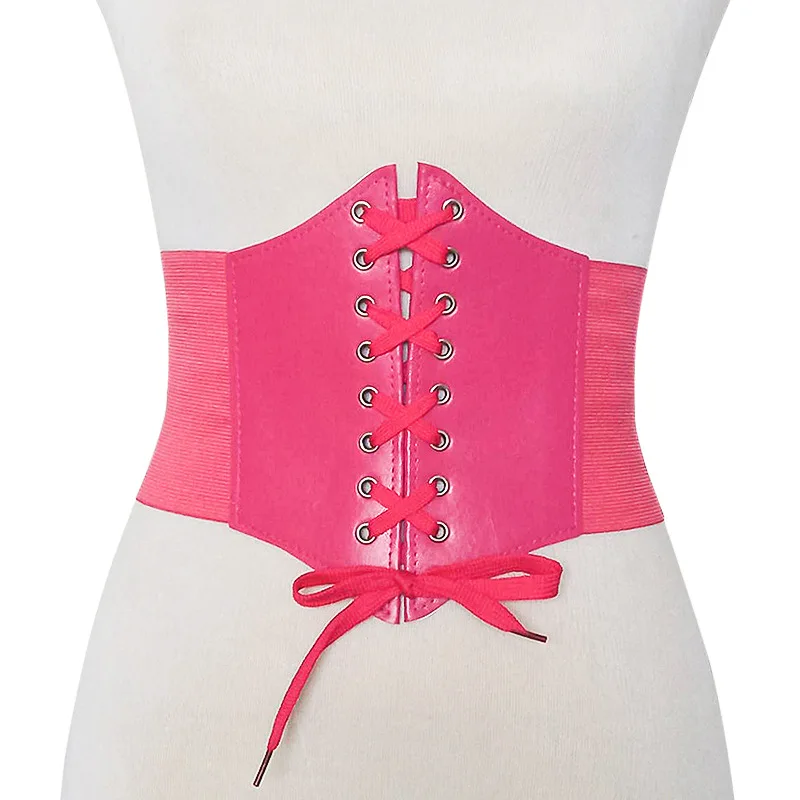 Elastic Belt Hot Pink Corset Belt Women's Corset Extra Wide Elastic Adjustable Waistband Tied Belt Pu corset stretch belt
