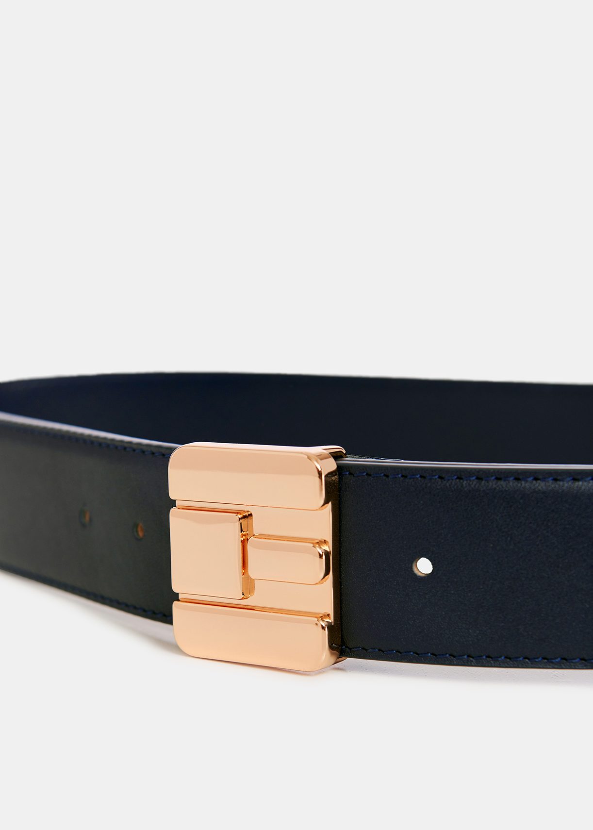Designer Belts Leather Belts Moschino Women\u0026#039;s Belt Navy Blue Leather Belt With E-shaped Buckle Essentiel Antwerp United States navy designer belt