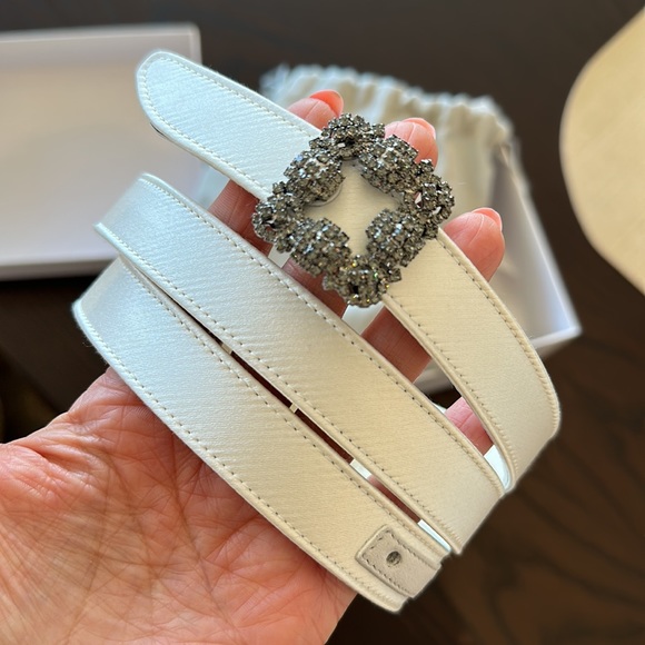 Manolo Blahnik | Accessories | Monolo Blahnik Hangisi Belt Mini In White In Size Medium | Poshmark manolo belt