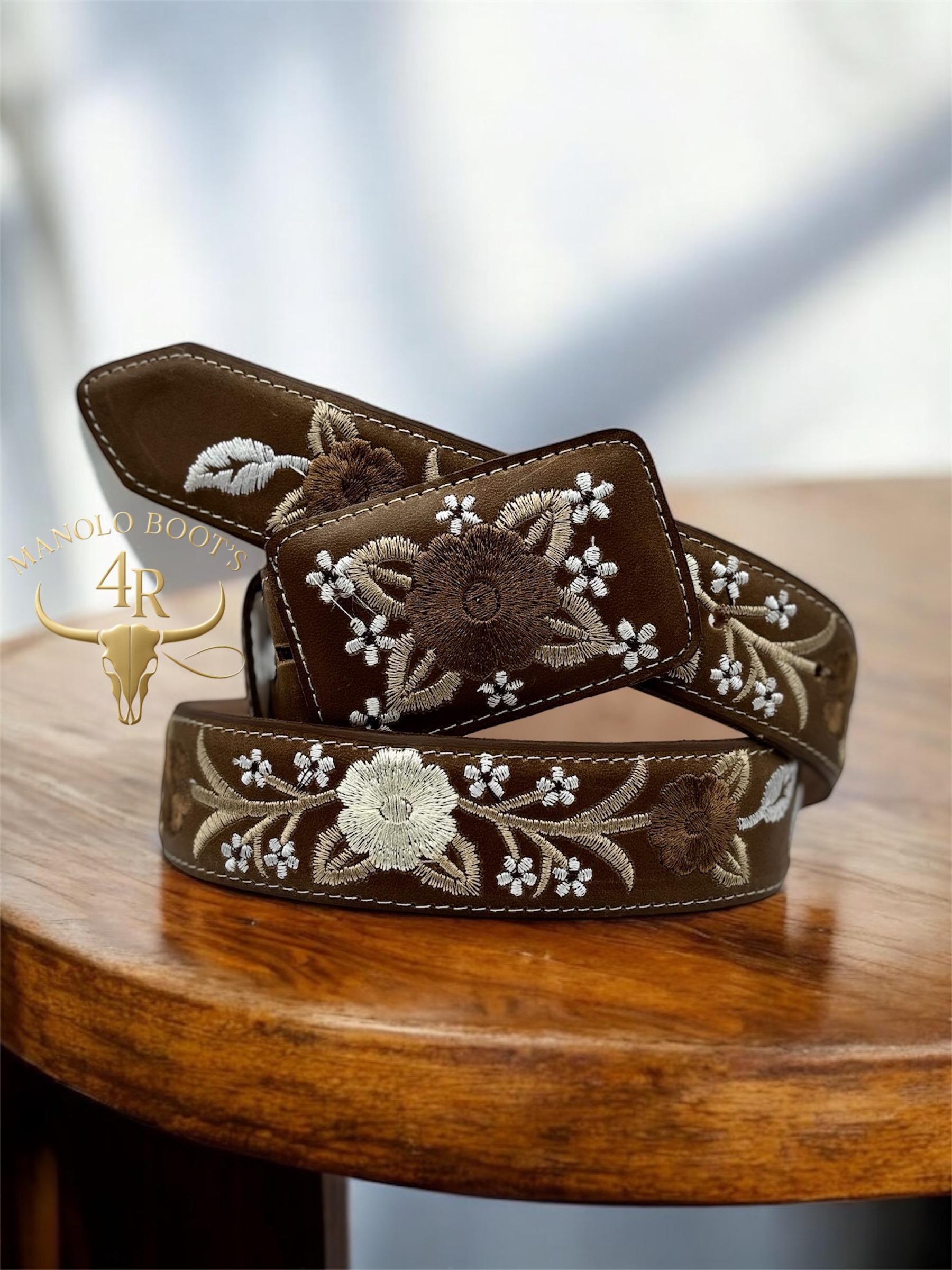 Genuine Leather Cowboy Belt With Silk Floral Embroidery | Mexican Inspired | Unique Design | Manolo Boots 4R - Etsy manolo belt