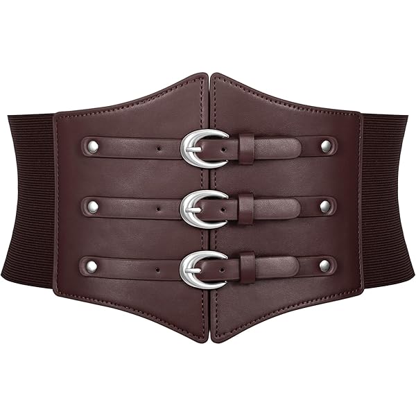 Women's Wide Leather Belt / Punk Brown Elastic Corset Belt