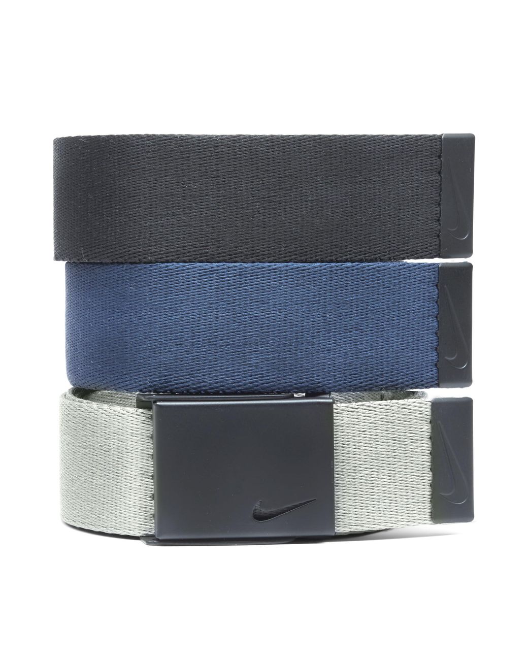 Nike Men's 3 Pack Web Belt, Matte Black Hardware, Black/Grey/Navy, One – 3alababak nike golf web belt 3 pack