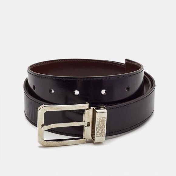 Salvatore Ferragamo Black/Brown Glossy Leather Cut to Size Reversible Belt salvatore ferragamo reversible belt black brown