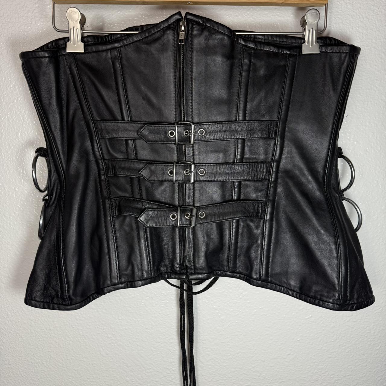 Preloved Women's Corset - Black - 32 – Gothic Black Leather Buckle \u0026 Harness Underbust … buckle corset harness