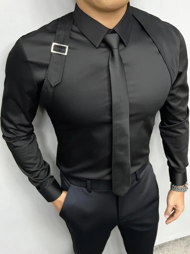 Mens Slim Fit Long Sleeve Shirt - Fashion Shoulder Strap Detail, Metal Accent Design, Stylish Social \u0026 Dress Shirt from Dhgate Mens Dress Shirts - price 23.64 pant shirt with shoulder belt