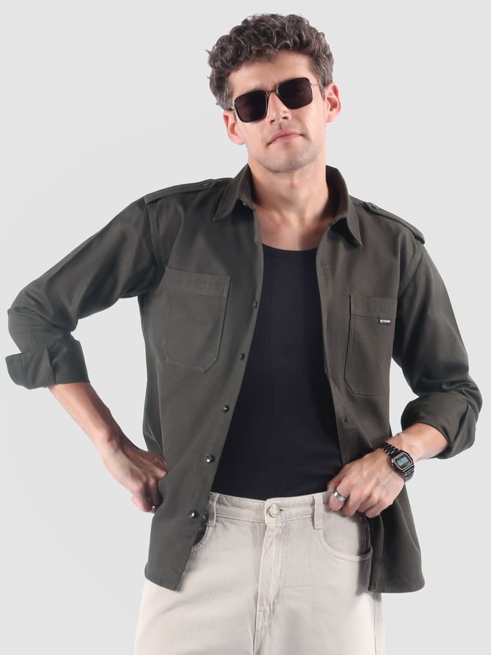 Pant Shirt With Shoulder Belt Dark Grey Shoulder Flap Cotton Shirt pant shirt with shoulder belt