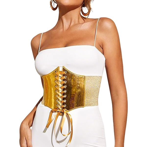 Ebay Waist Cinchs Gold Corset Belt VASTLUCKY Womens Elastic Waist Belts Lace-up Cincher Waspie Corset ebay waist trainer belt