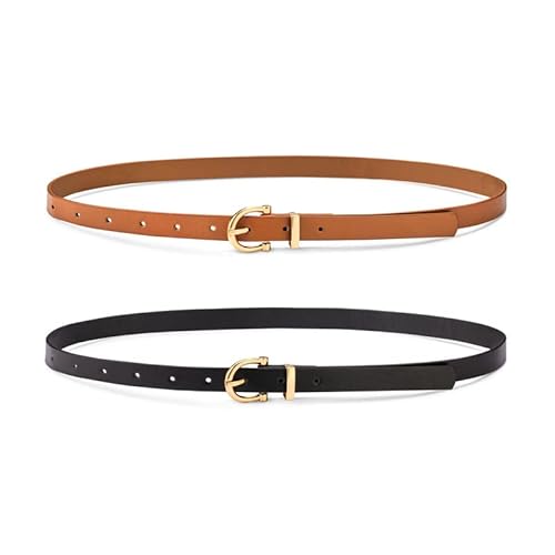 TRIWORKS 2 Pack Women Skinny Leather Belts Fashion Gold Buckle Thin Waist Belt for Pants Jeans Dresses Black/Brown in Kuwait | Whizz skinny waist belts for dresses