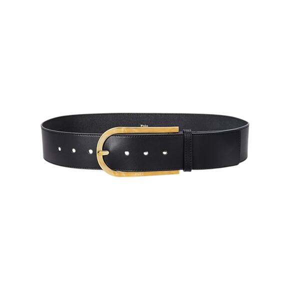 POLO RALPH LAUREN Elongated-Buckle Leather Belt in Black \u0026 Gold S lauren ralph lauren leather belt
