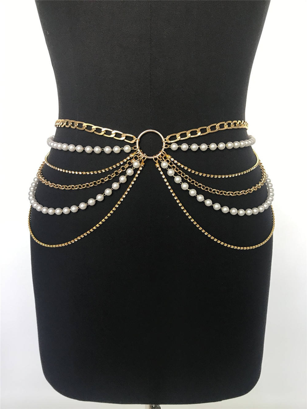 Waist Belt Brat Waist Chain Layered Pearl Belly Jewelry Layered Pearl Waist Belt With Gold