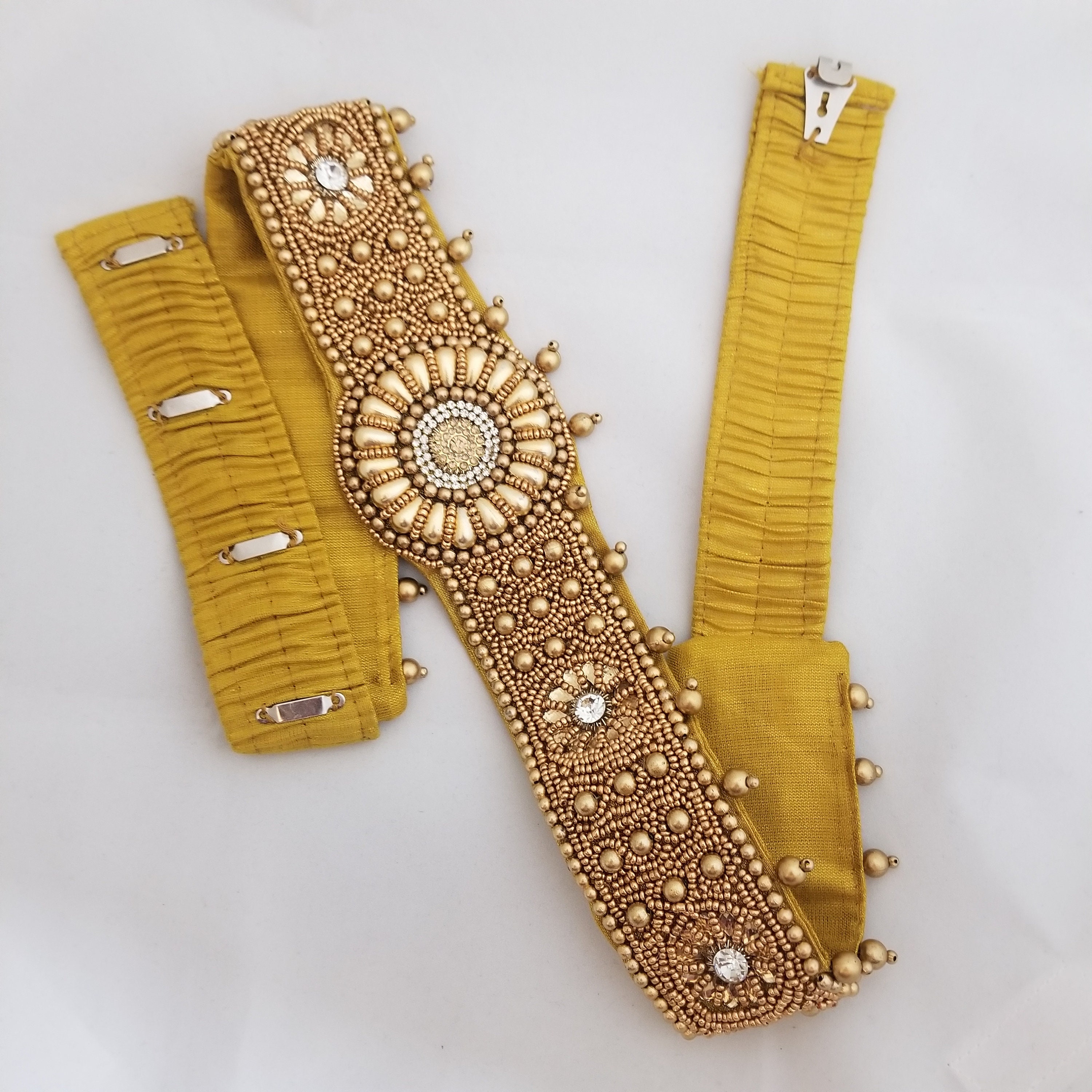 Gold Maggam Work Waist Belt Online Shopping Gold Saree Native Belts Traditional Maggam Work Cloth Saree waist belt for saree online shopping