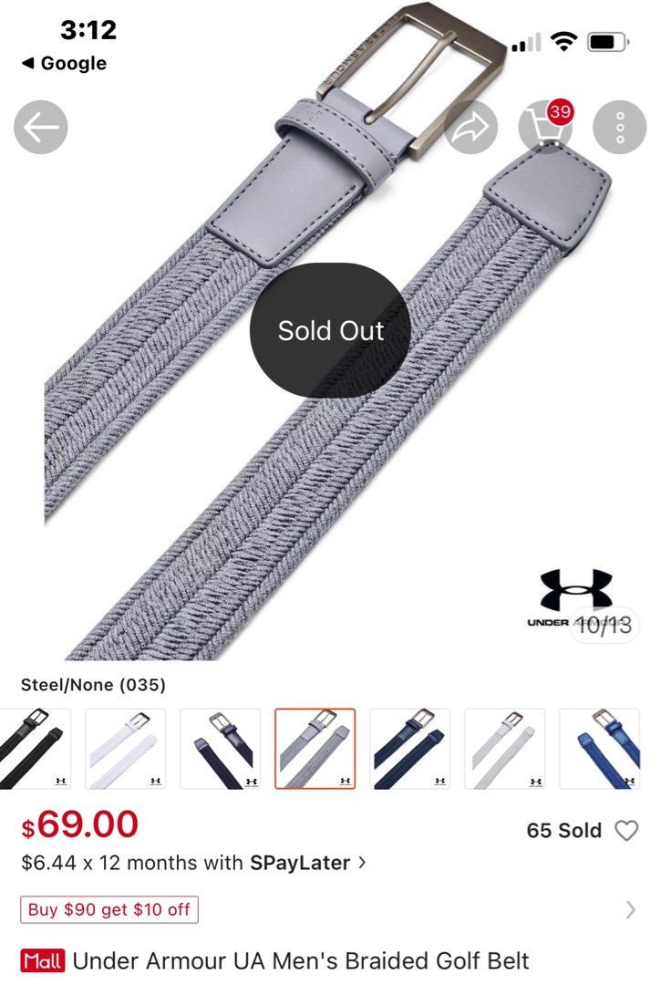 Under Armour]1361569-001/035/014 UA男Braided 高爾夫腰帶-, 男裝, 手錶及配件, 腰帶- Carousell 1361569 035