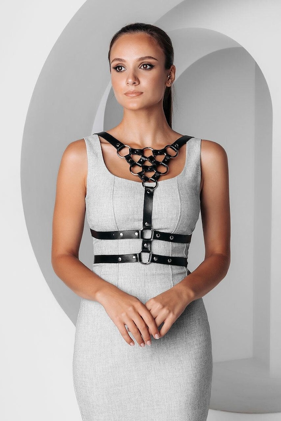 Underbust Harness Outfit Faux Leather Corset Underbust Waist Belt Harness Shoulder Straps