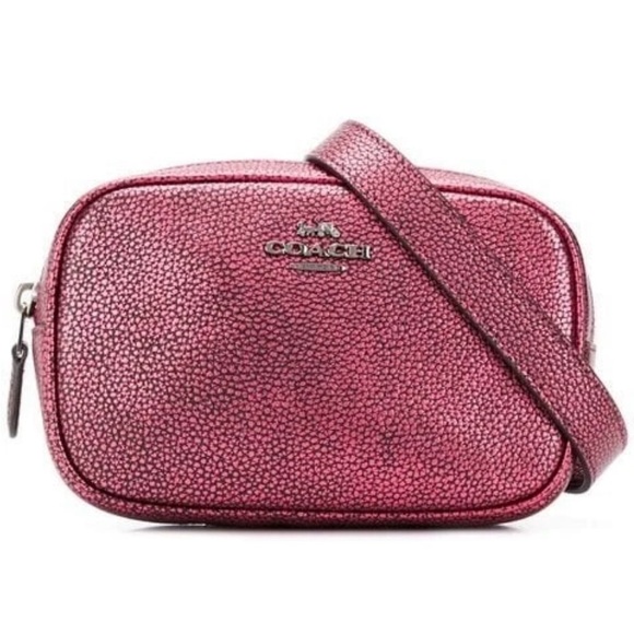 COACH Metallic Pebbled Leather Convertible Belt Bag Berry Pink Silver Like New coach pink belt bag