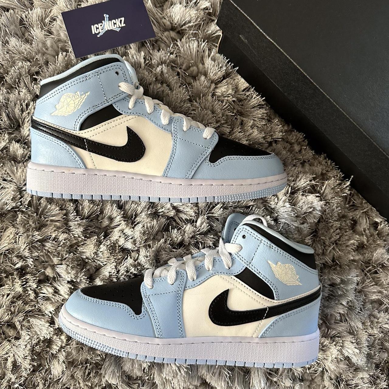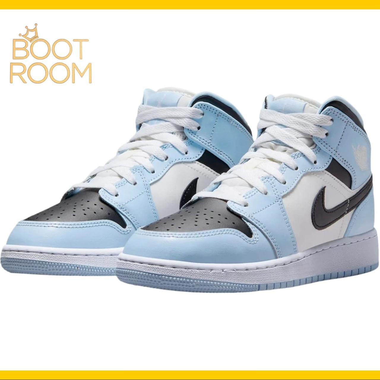 Jordan Women's Blue and White Trainers | Depop nike air jordan blue and white womens