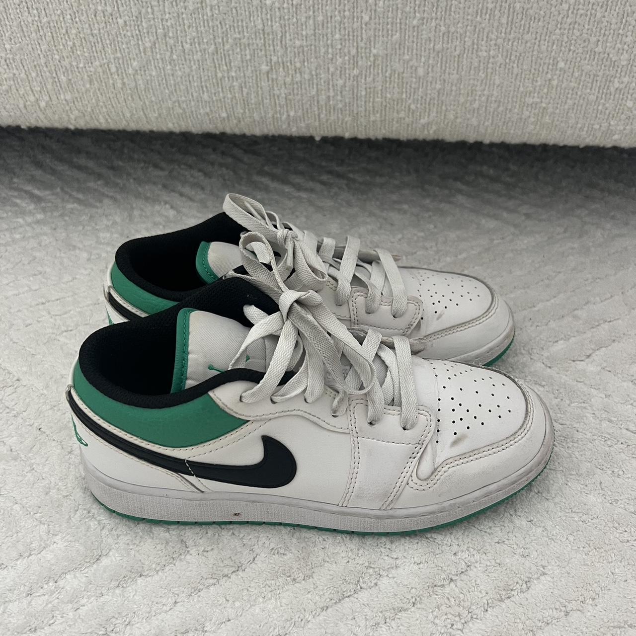 Green, black, and white Jordan 1 lows Lightly worn - Depop green black and white jordans