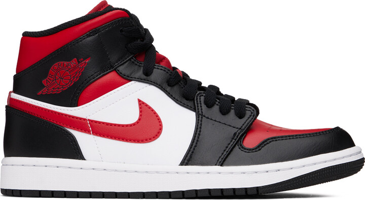 Nike Jordan Black & Red Air Jordan 1 Mid Sneakers - ShopStyle rode nike jordans