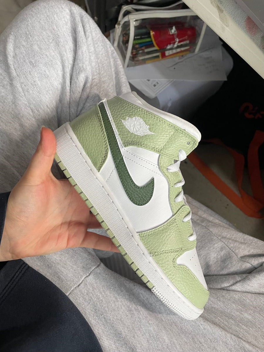 Jordan 1 Mid (sage green+white colourway) Brand - Depop nike air jordans sage green