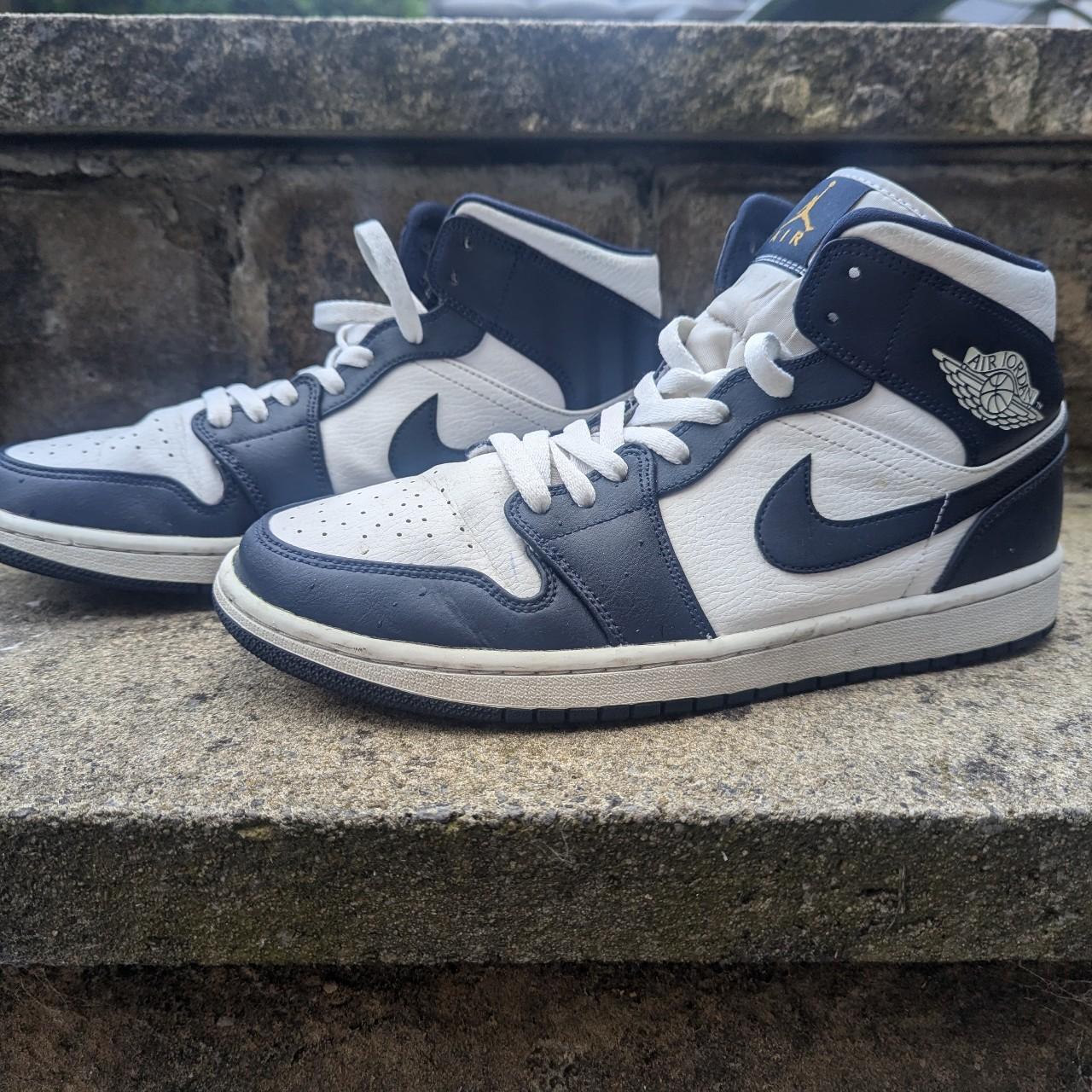 Navy blue Jordan 1 mid size UK 9.5 Good condition - Depop navy blue jordan 1 mid