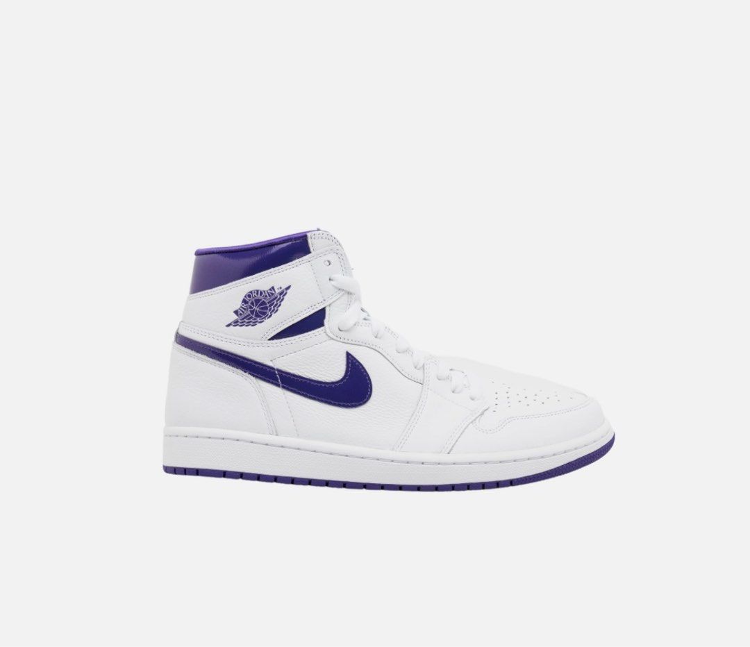 US 9w/7.5m) Nike Air Jordan 1 Retro High Court Purple White Metallic Jordans One Lilac Jumpman AJ1, Women's Fashion, Footwear, Sneakers on Carousell purple and white jordans 1