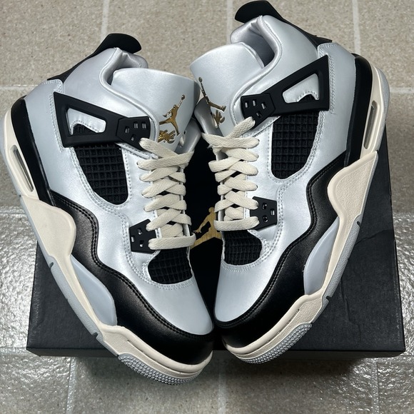 Air Jordan 4 Retro GS Pure Platinum Metallic Gold Shoes FZ8585-070 Size\u200e 7y jordan 4 retro metallic black