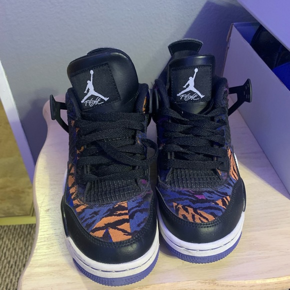 SIZE 7Y AIR JORDAN RETRO 4 GS “RUSH VIOLET” SHOWS W/ BOX black white rush violet retro 4