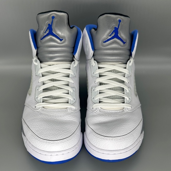 Nike Air Jordan 5 Retro - White Metallic Silver Black 136027-130 Size 8.5 | eBay retro 5 blue white silver