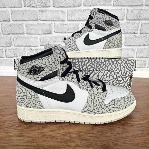 Jordan One Retro OG High White Cement Elephant Print Shoes 7Y (Women's 8.5) jordan 1 retro white elephant