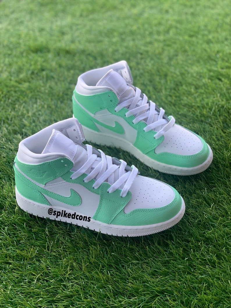 CUSTOM MINT GREEN COLORBLOCK AIR JORDAN 1 MIDð± | Cute nike shoes, All nike shoes, Air jordans
