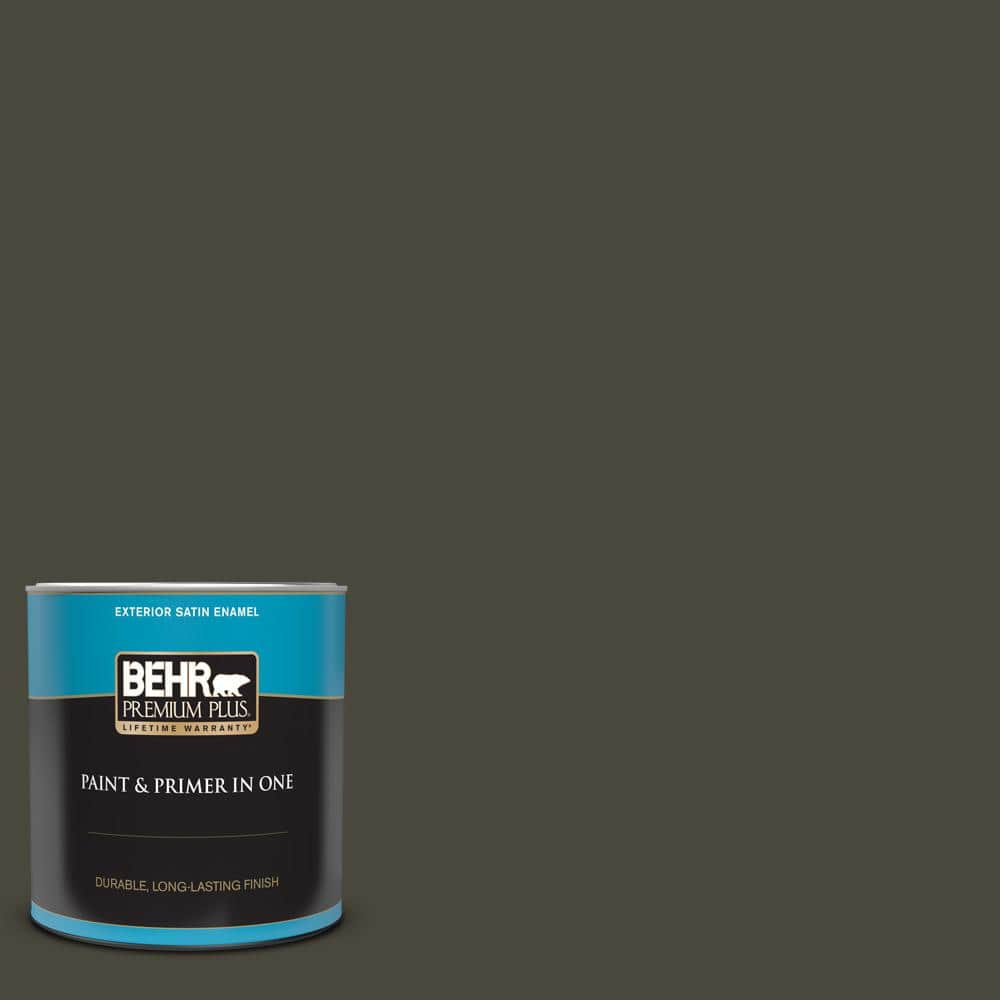 BEHR PREMIUM PLUS 1 qt. #PPU24-01 Black Mocha Satin Enamel Exterior Paint and Primer in One finishline black mocha