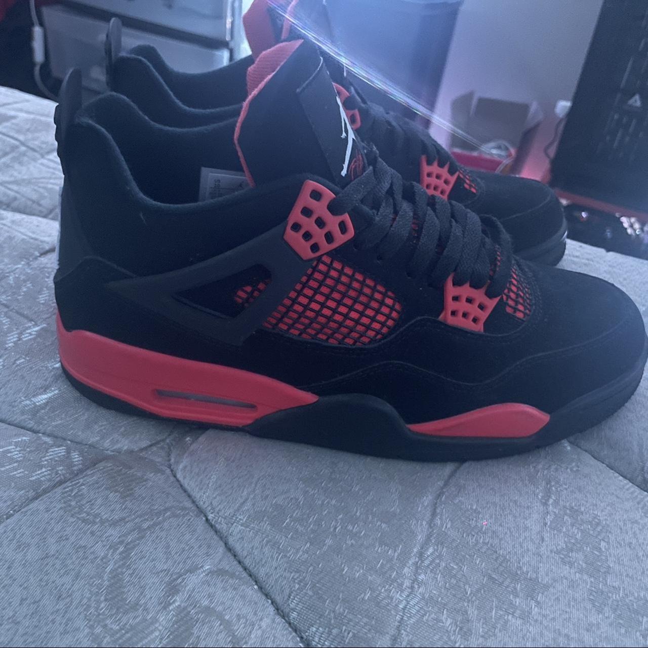 black&red thunder 4s 10 no box worn once no box - Depop red and black 4's