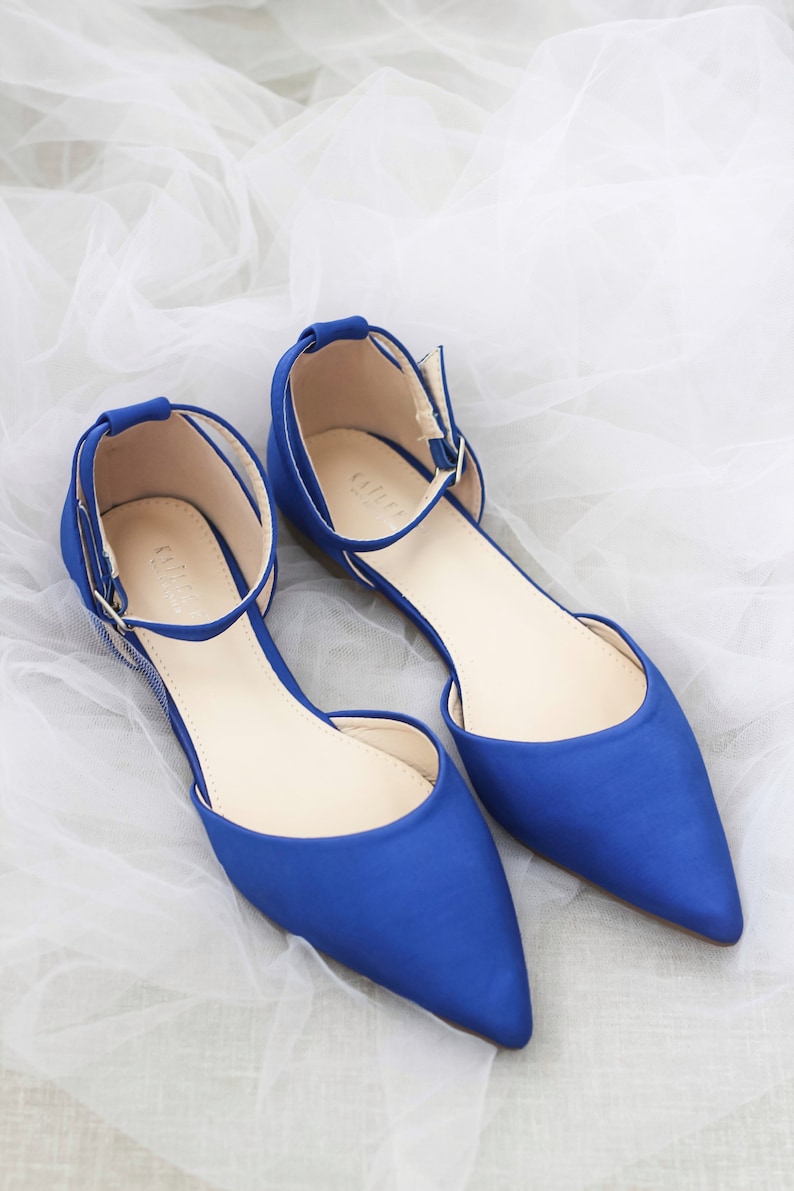 ROYAL BLUE Satin Pointy Toe Flats, Wedding Shoes, Bridesmaids Shoes, Evening Shoes â Kailee P. Inc.