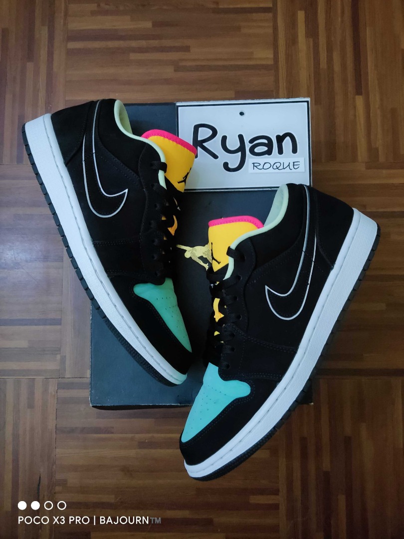 Air Jordan 1 Low Black Aurora Green Laser, Fesyen Pria, Sepatu , Sneakers di Carousell