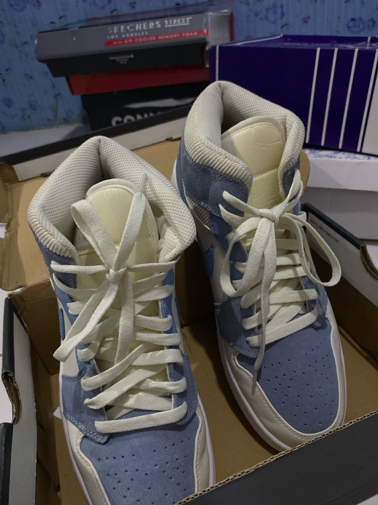 NIKE AIR JORDAN 1 MID MIXED TEXTURES BLUE, Fesyen Wanita, Sepatu di Carousell aj1 mid mixed textures blue