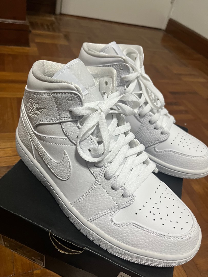 Air Jordan 1 Mid Triple White, Men's Fashion, Footwear, Sneakers on Carousell triple white mid