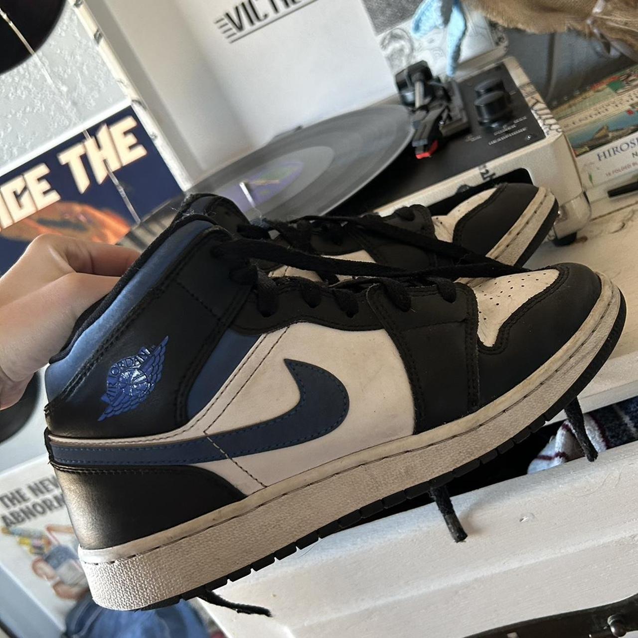 Black and Blue Air Jordan 1 Mid Great condition UK - Depop