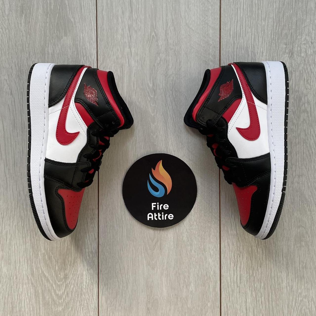 Jordan 1 Mid GS Fire Red - In Hand Size: UK 4.5, - Depop kicks on fire jordan 1