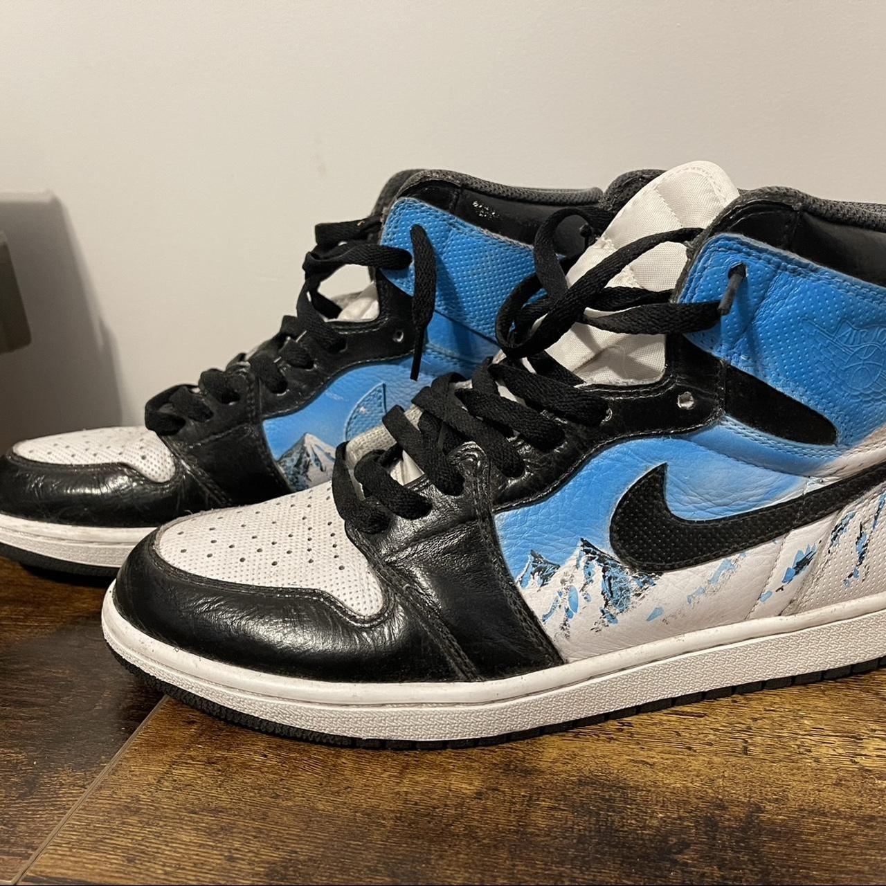 Blue, black and white air jordans. Menâs sizing 5 - Depop mens white and blue jordans