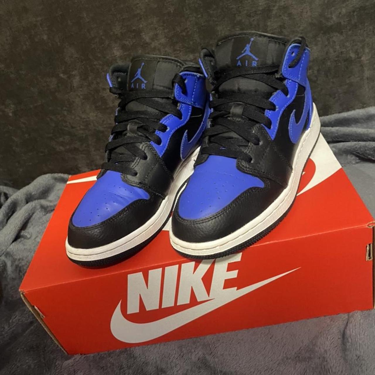 blue and black jordan ones (hyper royal) - size 8.5 - Depop jordan shoes blue and black