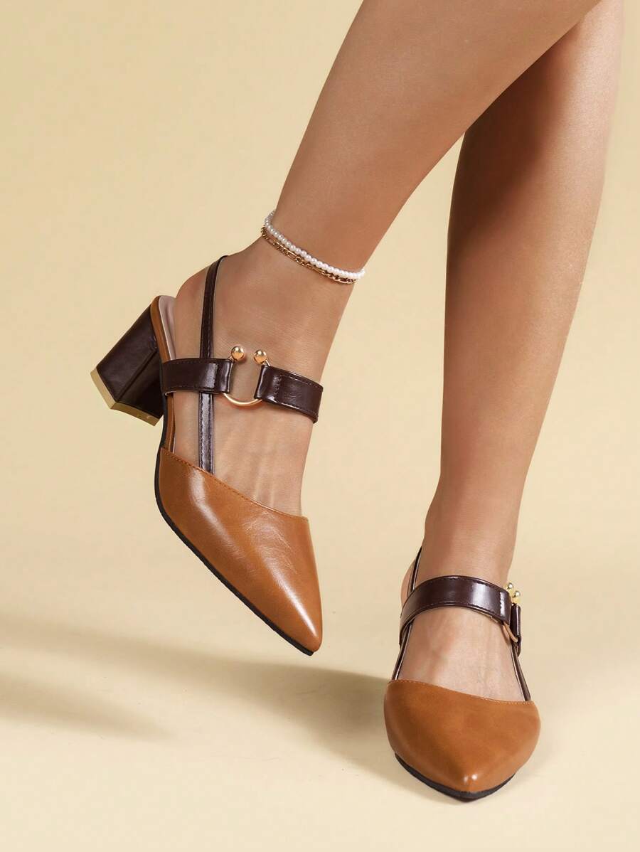 Sapatos femininos de salto alto com bico quadrado e confortável, marrom | SHEIN PT sapatos nike jordan