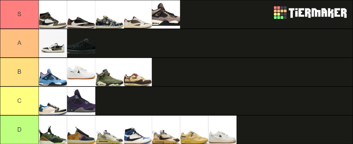 Travis Scott Shoes made by Nike by Maggus Tier List (Community Rankings) - TierMaker travis scott favorite shoes