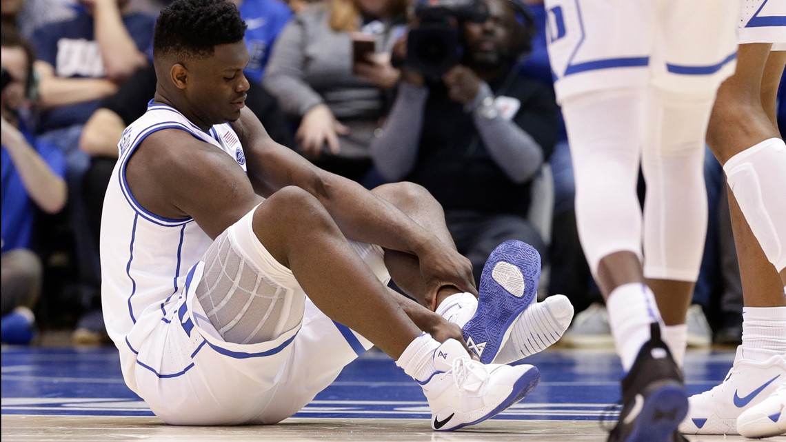 Zion Williamson injures knee as shoe breaks in UNC-Duke zion breaks shoe