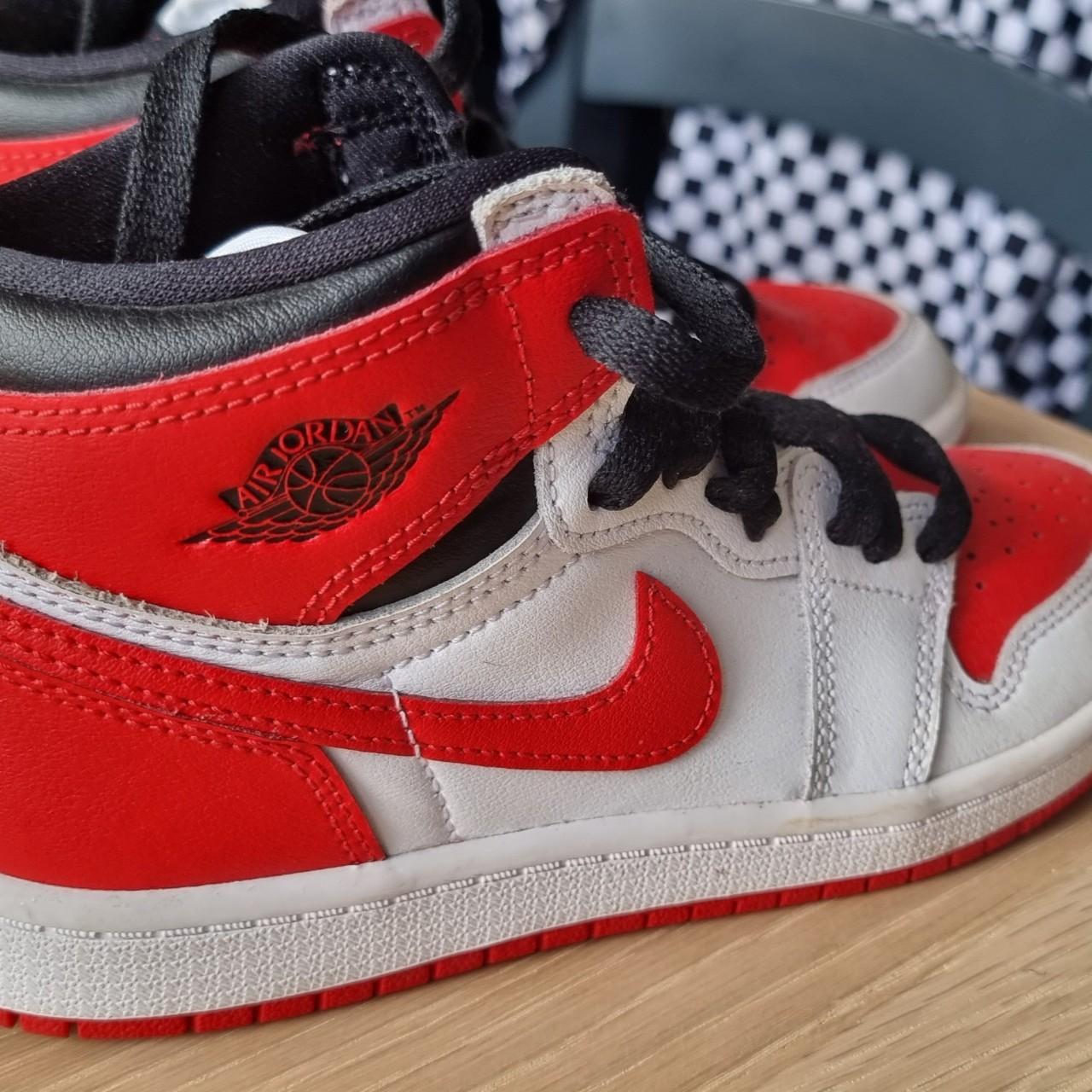 Kids Jordan 1 mids, red, black and white. UK size 1 - Depop infant red jordans