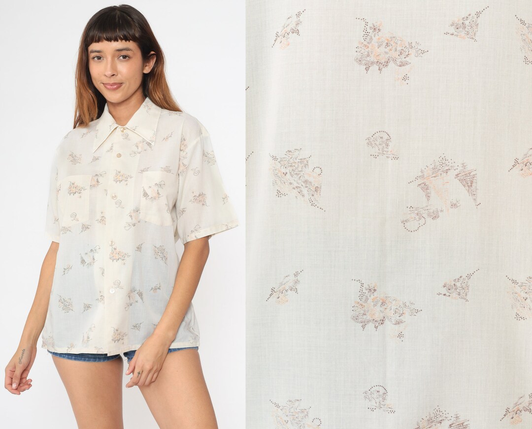 70s Tropical Sailboat Shirt Off-white Palm Tree Button up - Etsy sail off white shirt