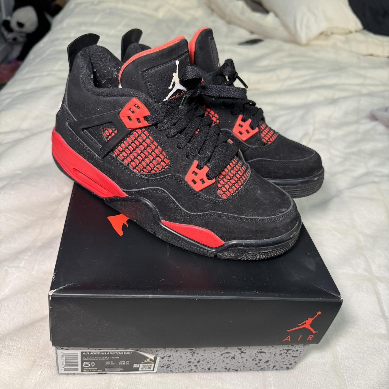 NIKE AIR JORDAN 4 RETRO GS Black red âRed Thunderâ - Depop jordan 4 red black