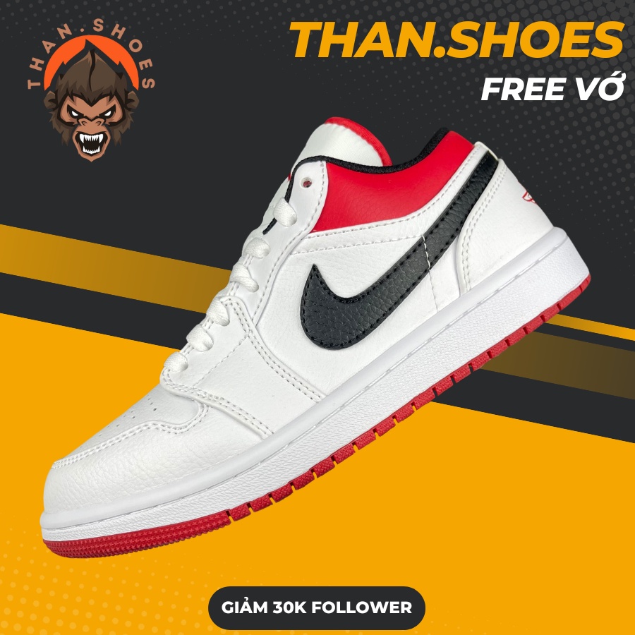 Già y JD1 Low White Univeristy Red, JD1 Thấp Trắng Äá» Móc Äen Bản Cao Cấp - Than.Shoes | Shopee jd 1 low all white