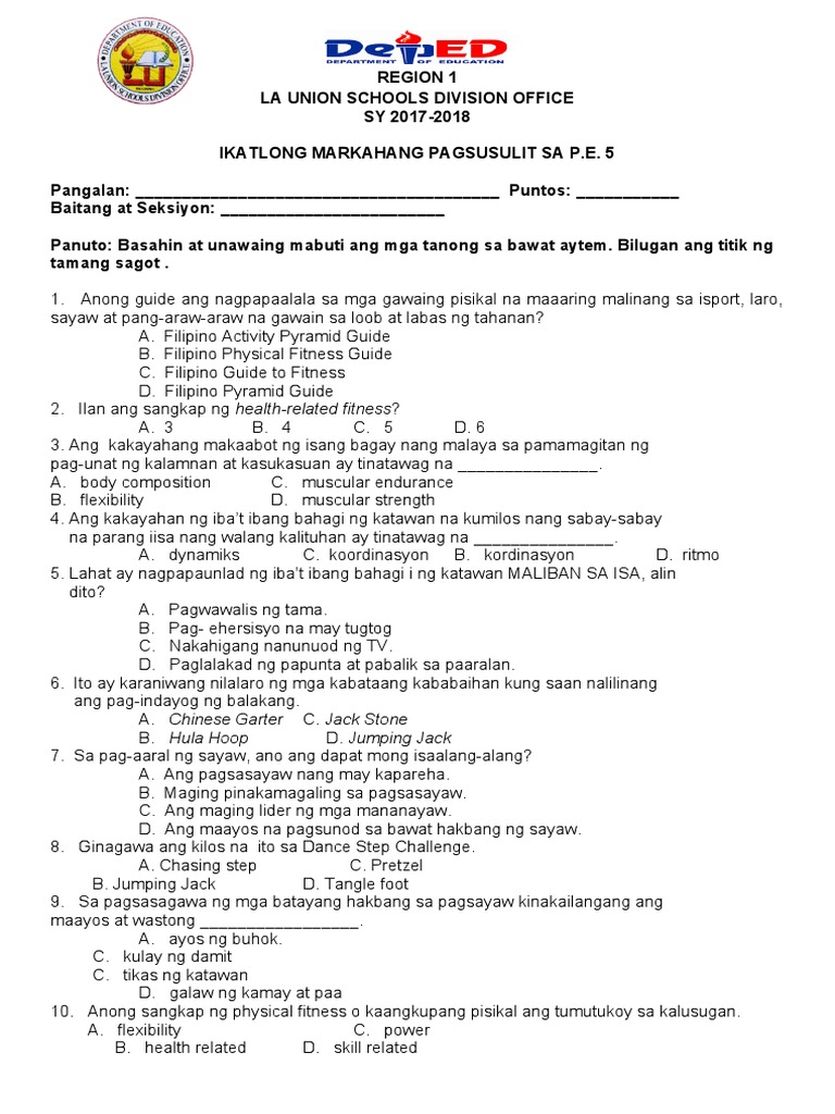 Grade 5 - PE (Lesson 1) | PDF | Team Sports | Sports oregon 5 pe