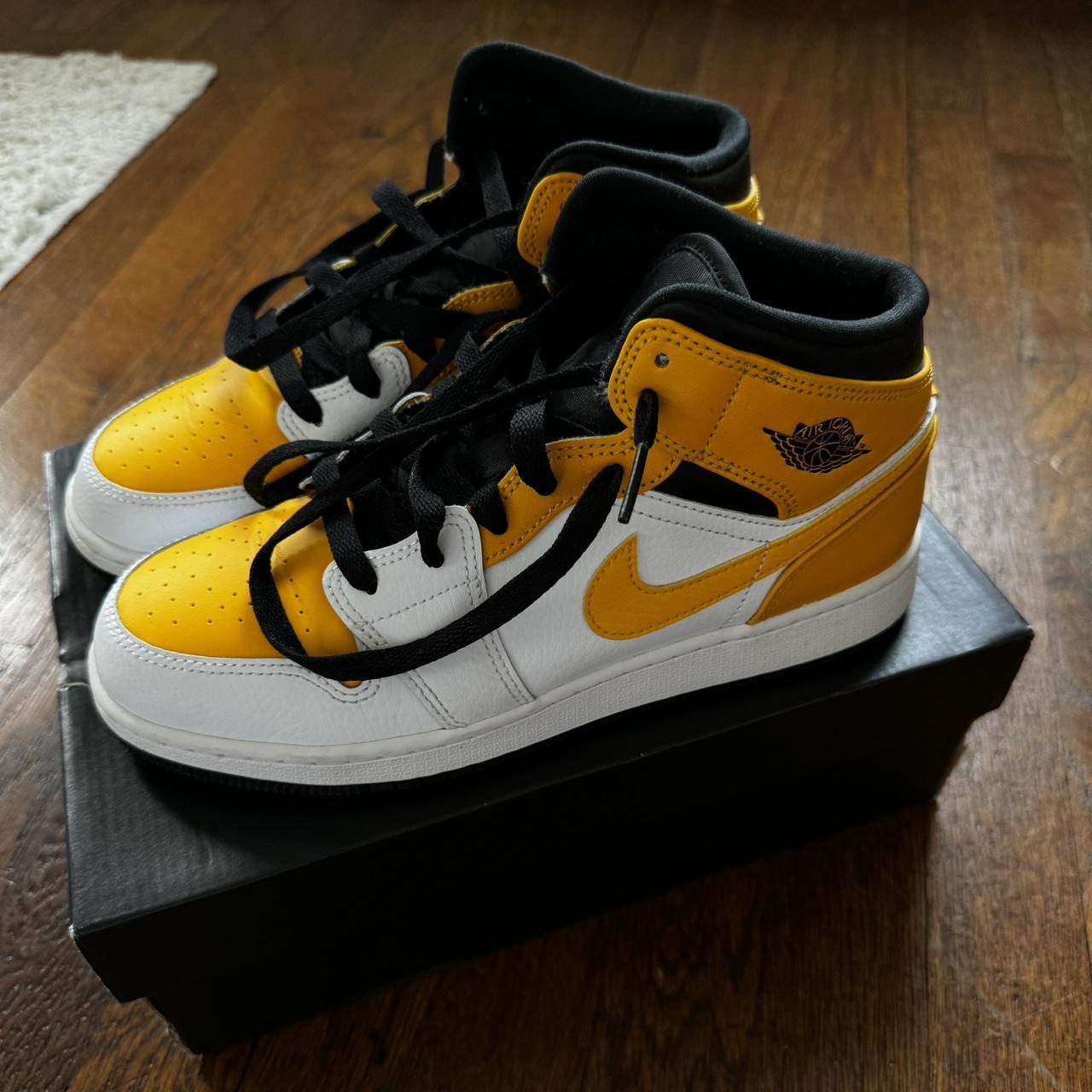 black and yellow jordan 1 mid size 6 youth fits - Depop black and yellow jordan 1 womens