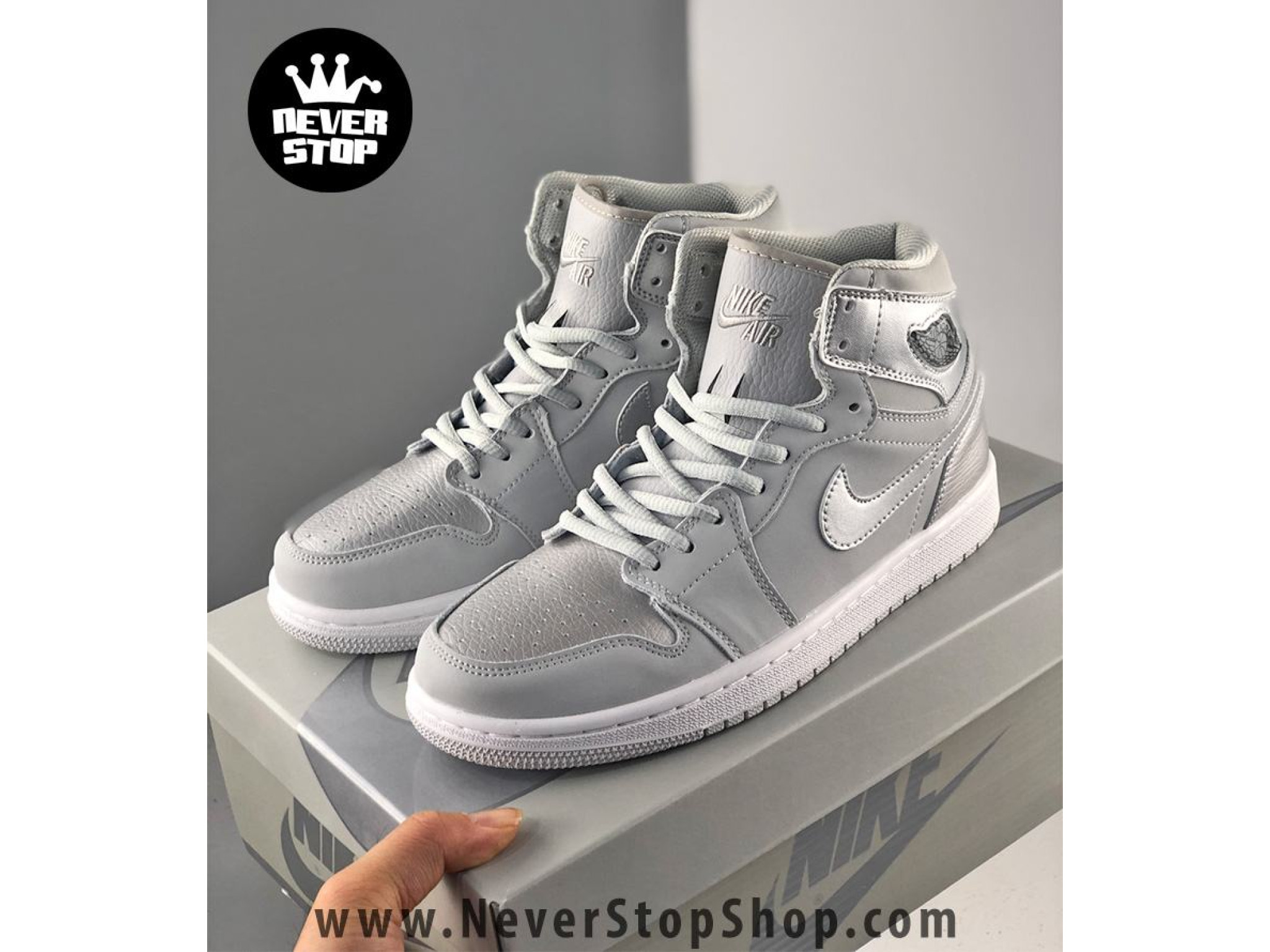 Già y NIKE JORDAN 1 HIGH METALLIC SILVER hà ng replcia 1:1 metallic jordan 1 silver